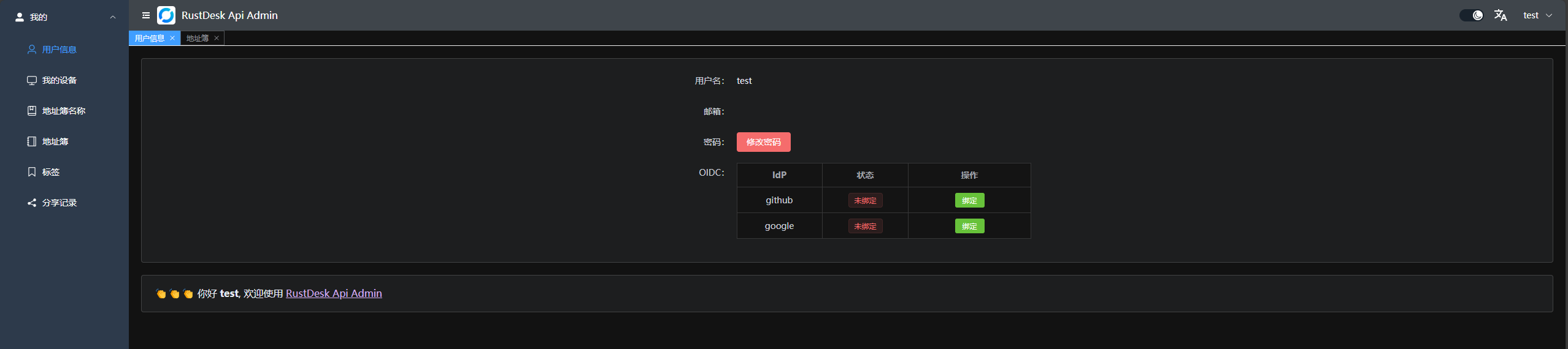 • 使用前后端分离,提供用户友好的管理界面,主要用来管理和展示。前端代码在rustdesk-api-web